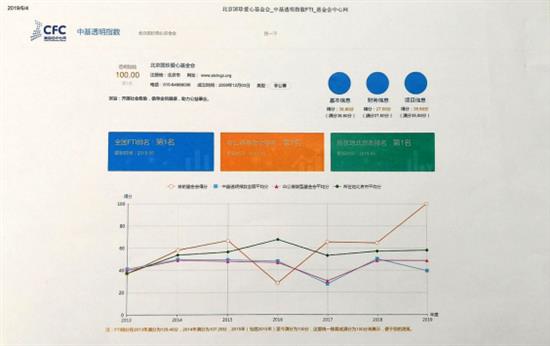 2019年6月,基金会中心网发布了新一期中基透明指数FTI,北京国珍爱心基金会荣获中基透明指数满分100分,全国排名第一。