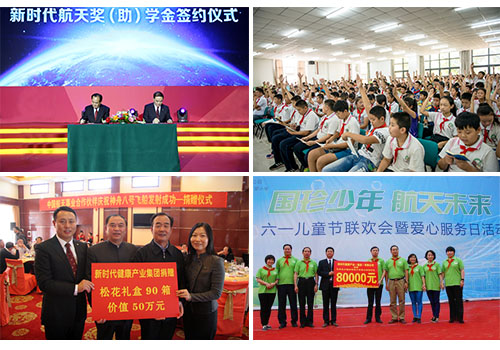 设立“新时代航天奖(助)学金”、捐赠海南文昌“国珍航天小学”、开展航天慰问、组织航天知识科普讲座等公益活动,致敬航天事业,感受航天精神,激发崇尚科学、探索未知、敢于创新的热情,播撒科技兴国、人才强国、航天报国的种子,为实现中华民族伟大复兴的中国梦培育时代新人。