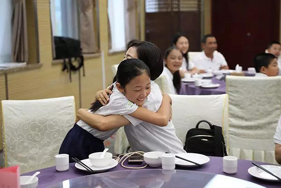 ▲ 同学们拥抱荣誉校长们
