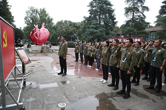 10月9日,为深入学习贯彻习近平新时代中国特色社会主义思想和党的二十大精神和进一步推动主题教育走深走实,认真贯彻落实习近平新时代中国特色社会主义思想主题教育第一批总结暨第二批部署会议精神,北京国珍爱心基金会副理事长张红,秘书长杨少华及部分理事和党员干部前往河南大别山干部学院进行沉浸式学习研讨。河南大别山干部学院工会主席周秋红对各位同志的到来表示热烈欢迎并授予班旗。