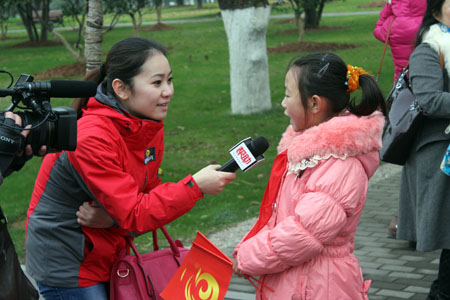 记者现场采访首次来到长沙的孩子