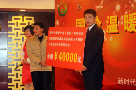 随后,联欢会上出现了感人的一幕:27位品学兼优、家庭条件艰苦的小学生得到了新时代人一对一认领资助。每年每名学生将得到2000元助学基金,且每人与资助学生至少相聚一次,资助将持续至助学儿童义务教育结束。