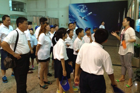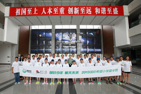 大巴车还未停稳,同学们就远远看见北京国珍爱心基金会副理事长黄永刚在载人航天工程展览馆前热情迎候。步入展厅,同学们被深蓝色的“苍穹”深深吸引。航天城讲解员从运载火箭到载人飞船系统,从航天测控与通信到航天员培育训练系统逐一为孩子们进行了详细讲解,让孩子们增长了航天知识,全面了解了我国航天事业的辉煌成就,航天功勋们的奉献精神也使孩子们深受感动。参观期间,航天英雄还亲切接见了本次夏令营的师生们,并鼓励同学们好好学习,强健体魄,为祖国的现代化事业贡献力量。