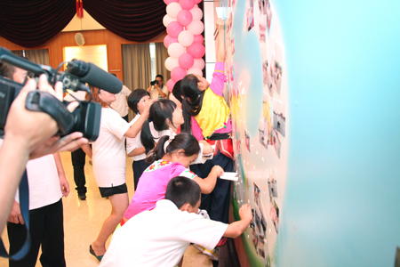 一步入联谊活动现场,同学们的目光立刻被创意十足的照片墙吸引。这些照片由公司专业摄影师跟踪拍摄,记录了孩子们近几天北京之行的精彩花絮。孩子们欢呼雀跃地找寻着自己的影像,并将一张张记录最美瞬间的画面永久珍藏。