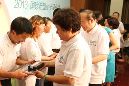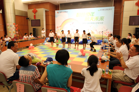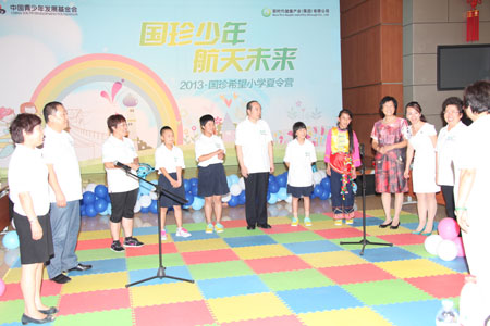 下午,全体师生参加了公司精心策划的“国珍少年 航天未来”夏令营联谊活动。北京国珍爱心基金会理事长殷鹤声、秘书长张红,国珍希望小学荣誉校长刘洵、刘文明、仉昊、王爱芹、冯景华、谢建君及40余名北京新时代人共同参加了联谊。