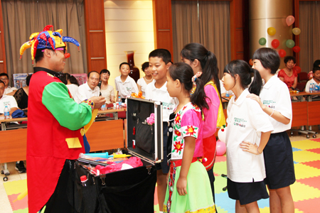 为了使联谊活动拥有更多的趣味性,公司特别邀请了专业演员带来精彩的魔术和小丑表演。热烈的掌声过后,孩子们按捺不住,纷纷摩拳擦掌,争相表演舞蹈、唱歌、吹笛、葫芦丝演奏等拿手节目。新时代人也被孩子们的童真感染,主动加入到他们的队伍。大家在一起载歌载舞,联谊会现场一片欢歌笑语。