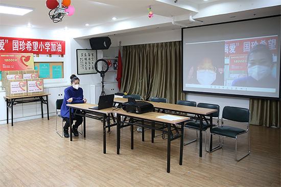 4月5日,国珍希望小学荣誉校长刘洵、玥茏芯联合北京国珍爱心基金会,在北京举办线上捐赠仪式,向四川省仪陇县度门镇国珍希望小学、湖北省应城市天鹅镇国珍希望小学、江西省宜春市靖安县璪都镇国珍海洋(国际)希望小学三所希望小学捐赠口罩,播撒爱心,助力复课。